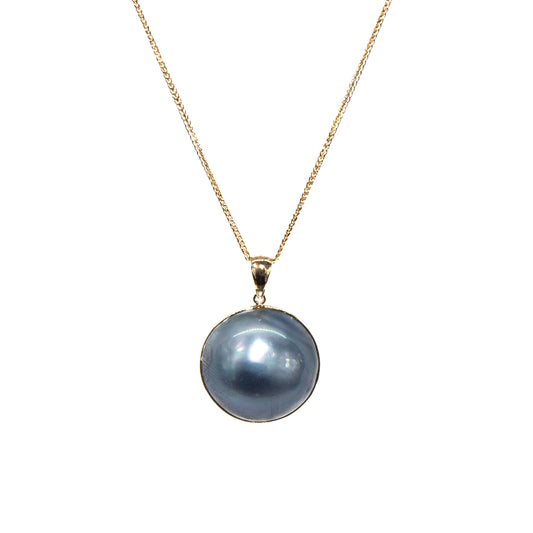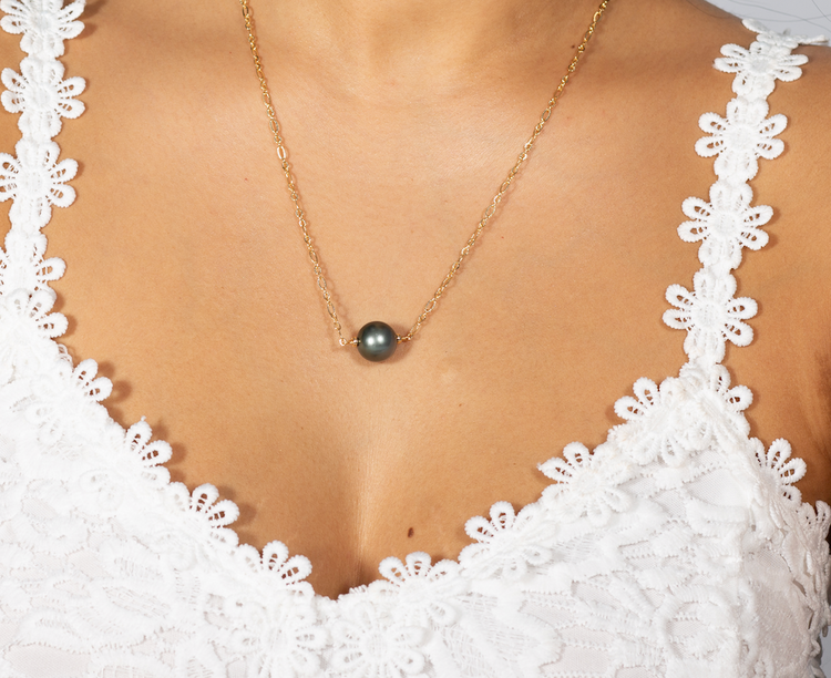 18K Golden Solitaire Pearl Necklace, 9- 10 mm