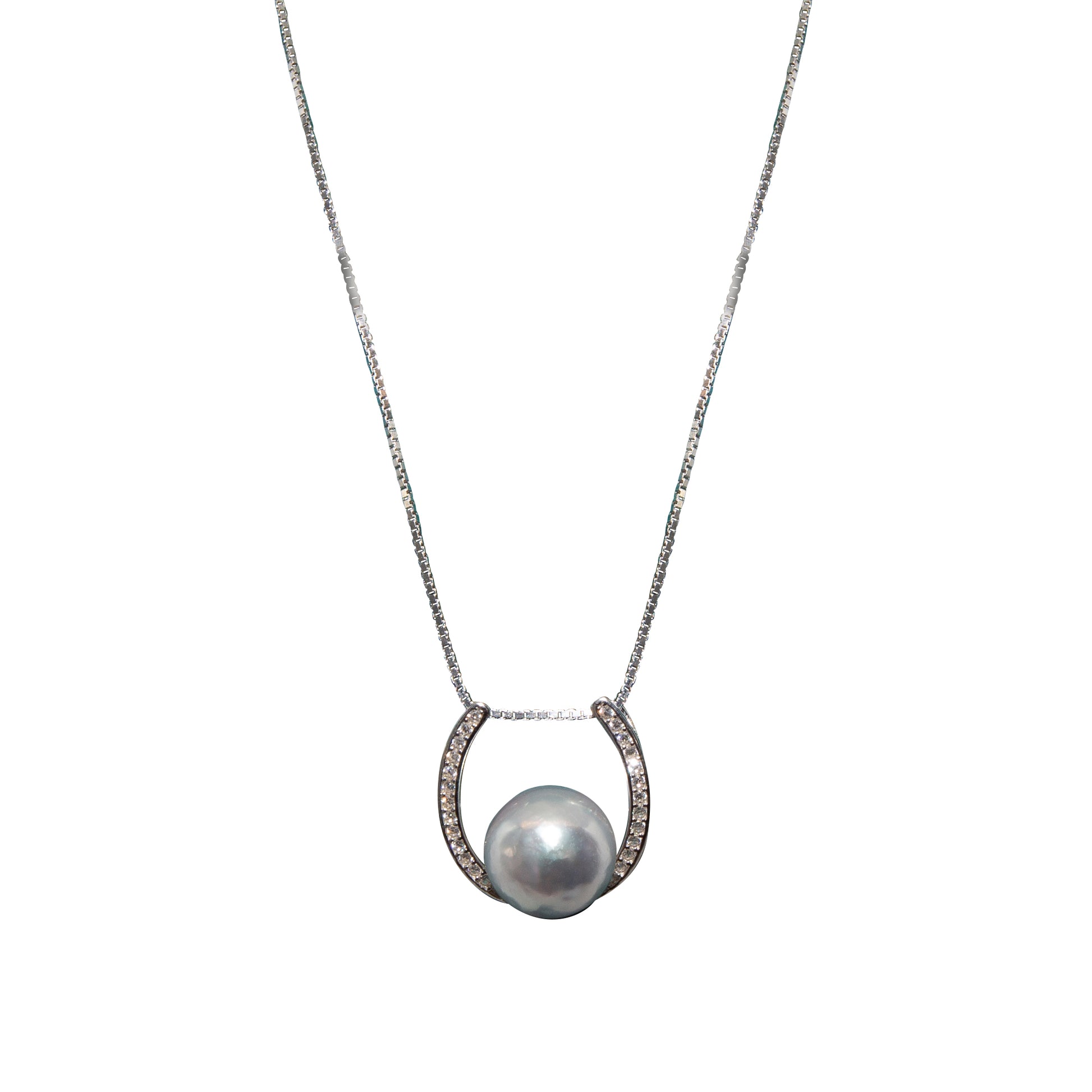 Our Akoya Halo Necklace captures the quiet radiance of moonlight in motion. A lustrous silver-grey Akoya pearl rests gracefully within a crescent of shimmering crystals, suspended on a sleek sterling silver chain.