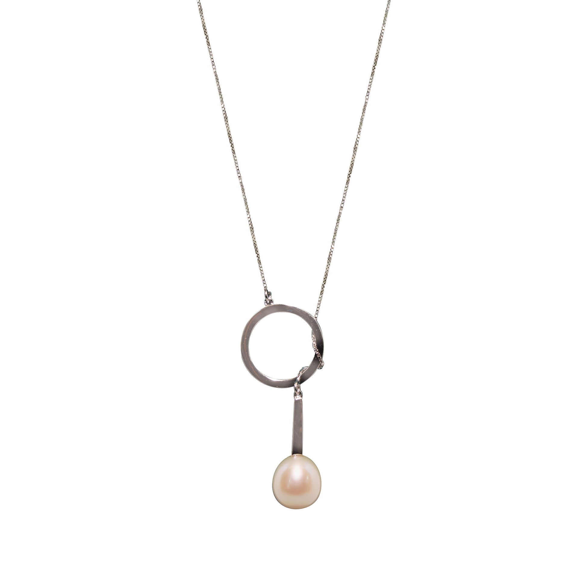 Our Chic Droplet Necklace captures the essence of elegance and simplicity. A radiant white pearl gently hangs from a sterling silver chain, creating a graceful silhouette that complements any style.