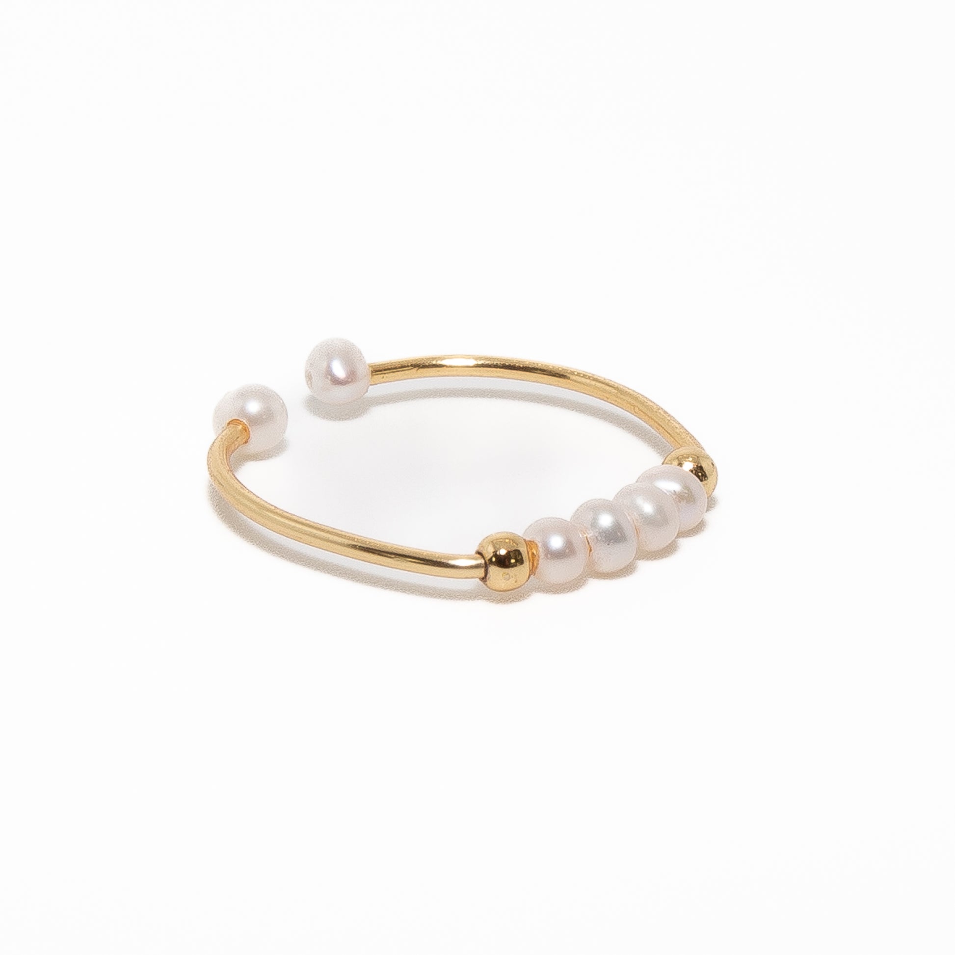 Our Golden Orbit Ring blends classic charm with modern simplicity, featuring a row of five petite freshwater pearls framed by polished gold-filled accents. Designed with an open band for an adjustable fit, it’s the perfect balance of grace and versatility.