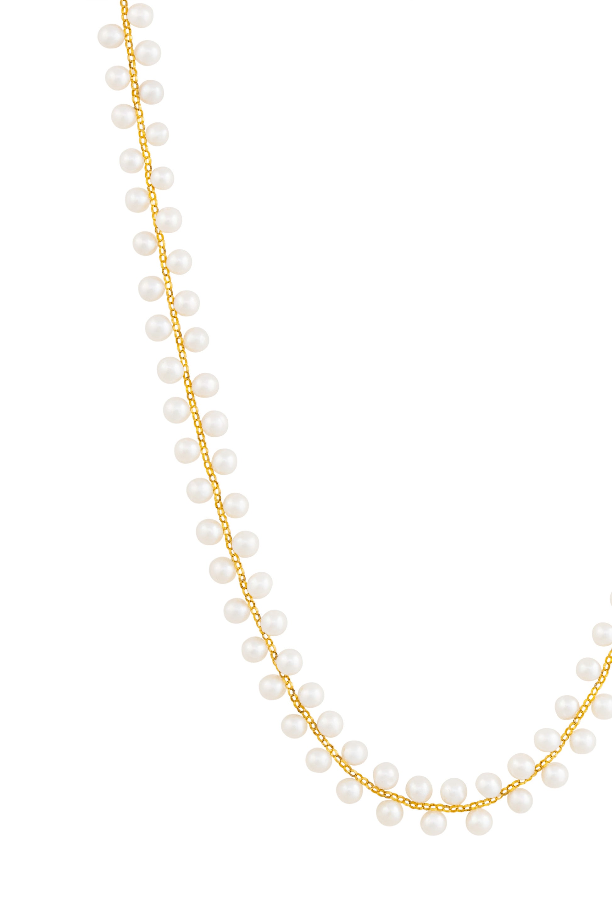Our Golden Whisper Choker features petite freshwater pearls woven through a delicate gold-toned mesh, creating a soft, airy texture. It's adjustable for the perfect fit.