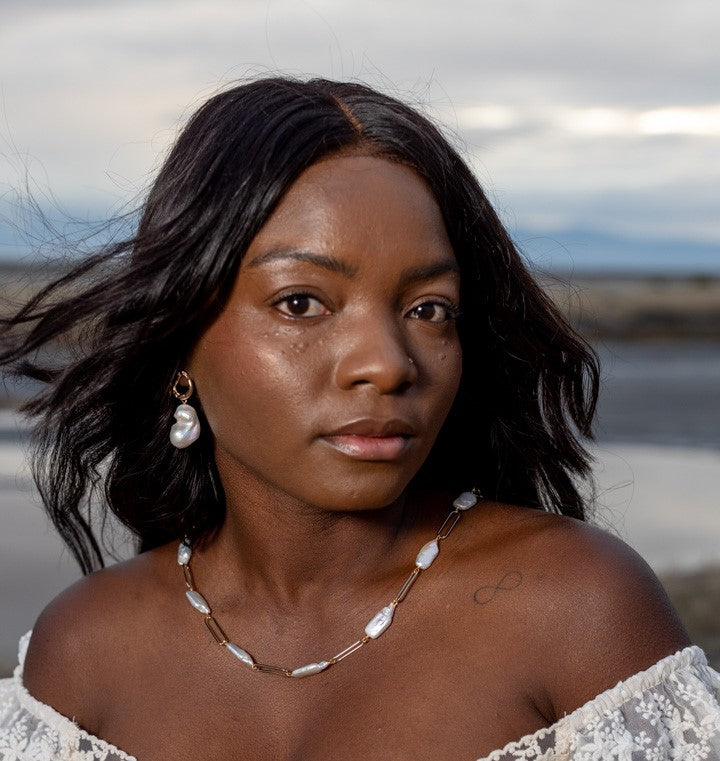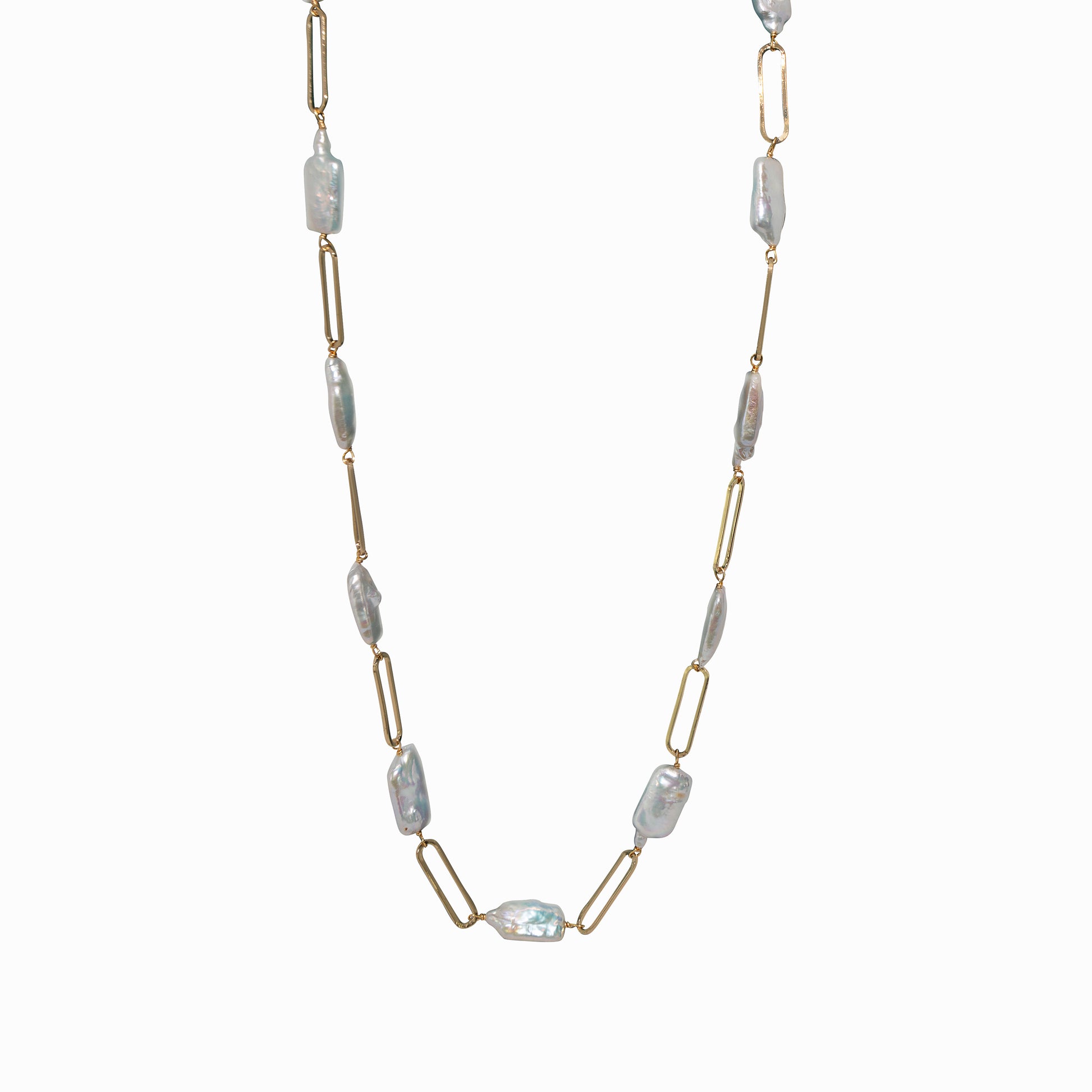 Our Baroque Harmony Necklace features exquisite baroque pearls thoughtfully arranged along a radiant gold-filled chain. Each pearl’s organic shape and gentle sheen create a natural rhythm.