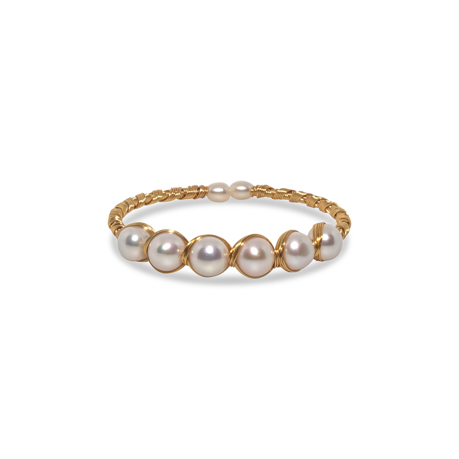 Our Golden Embrace Bracelet features radiant freshwater pearls delicately wrapped in smooth gold-filled wire, blending timeless elegance with a touch of modern artistry.