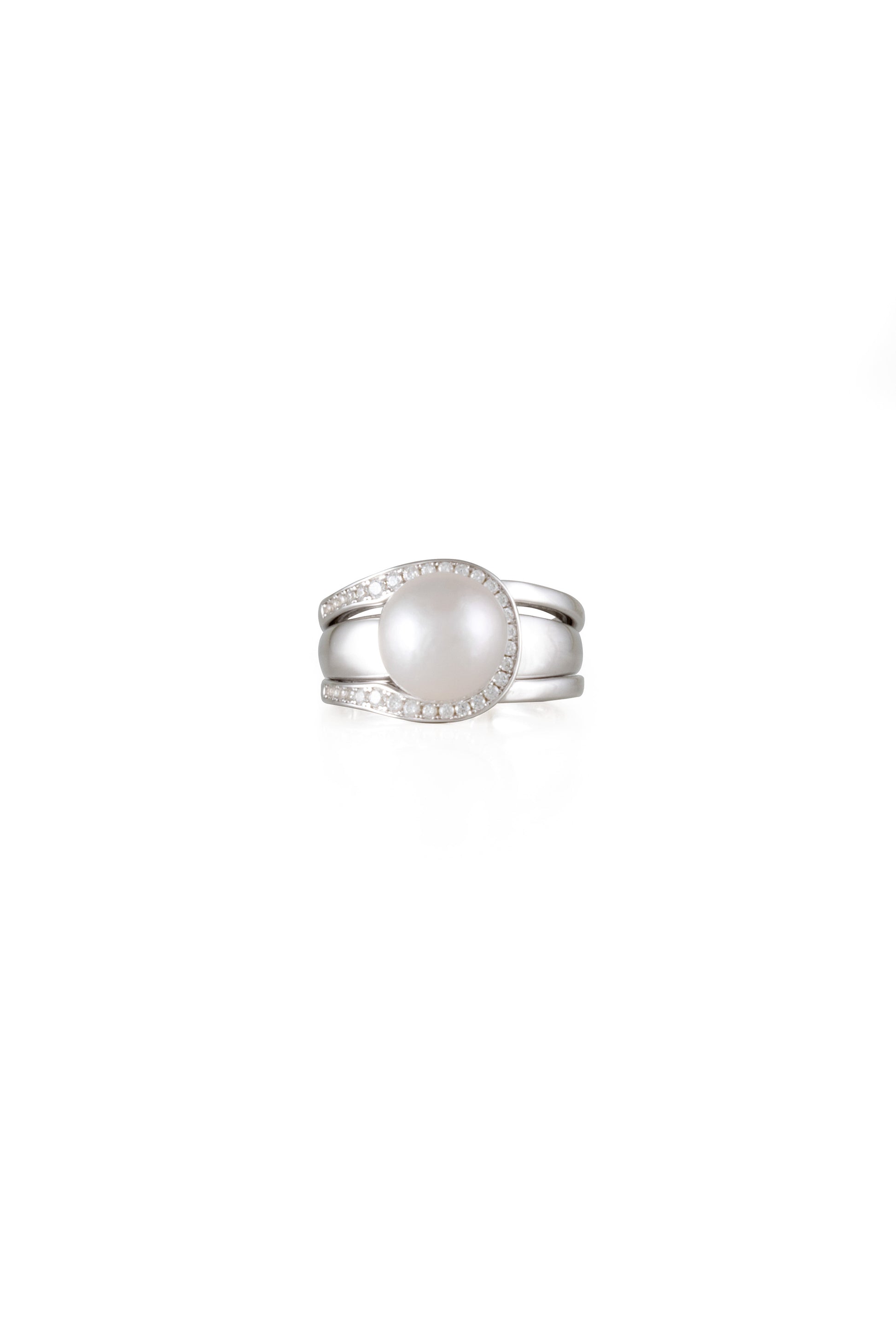 Our Luna Ring pairs a glowing freshwater pearl band with a crystal-lined outer band that opens and detaches. Wear both for added brilliance or the pearl band alone for a clean, understated style.