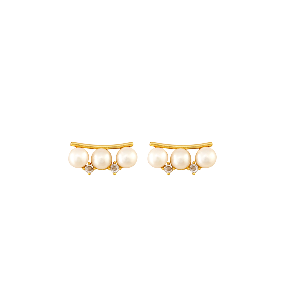Our Pearl Arc Minis feature three luminous freshwater pearls accented by petite crystals, all set beneath a sleek gold-filled arc. Delicate and modern, they offer an effortless hint of sparkle for everyday elegance.