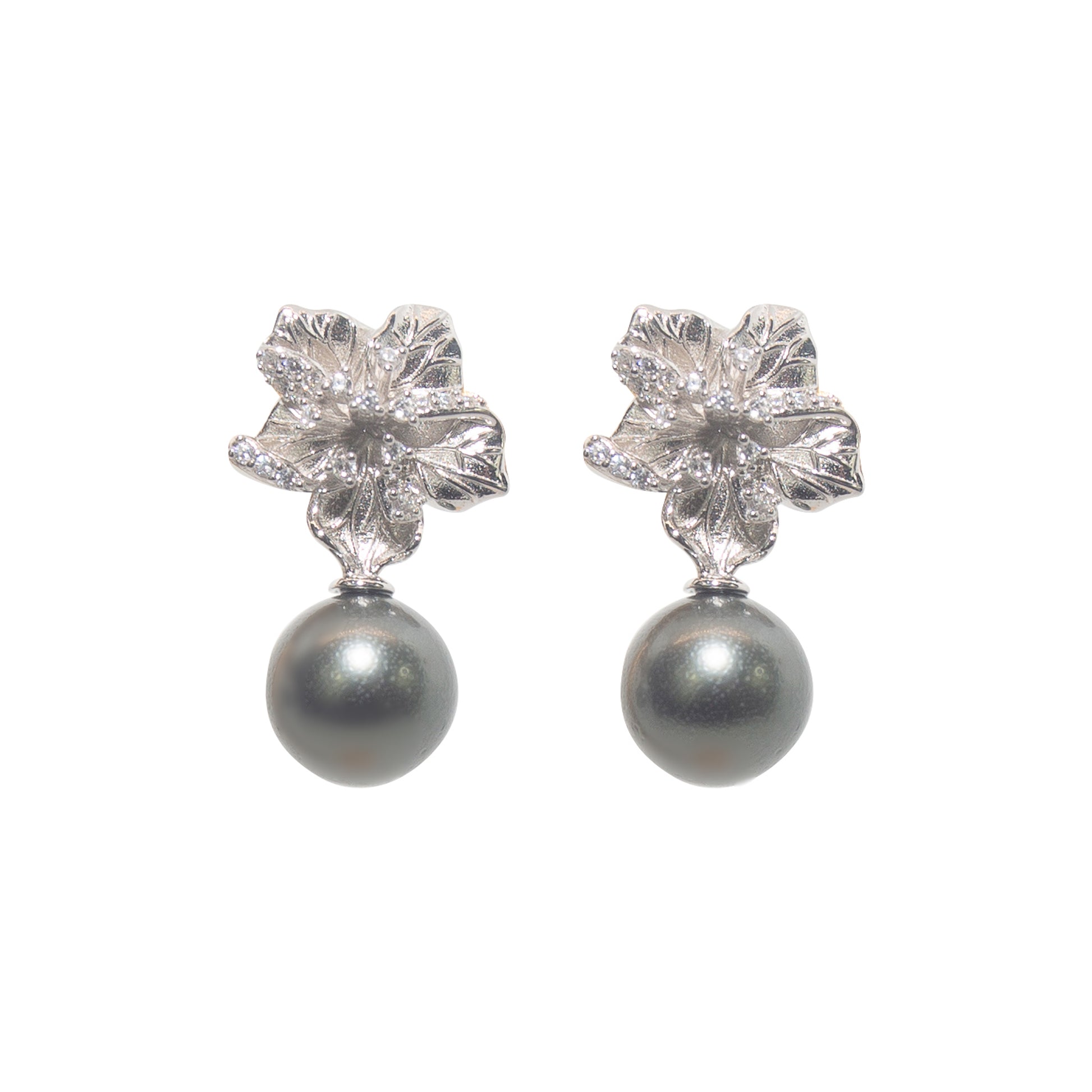Our Tahitian Bloom Earrings feature radiant grey/black tahitian pearls set in polished sterling silver, capturing the perfect blend of exotic allure and refined sophistication.